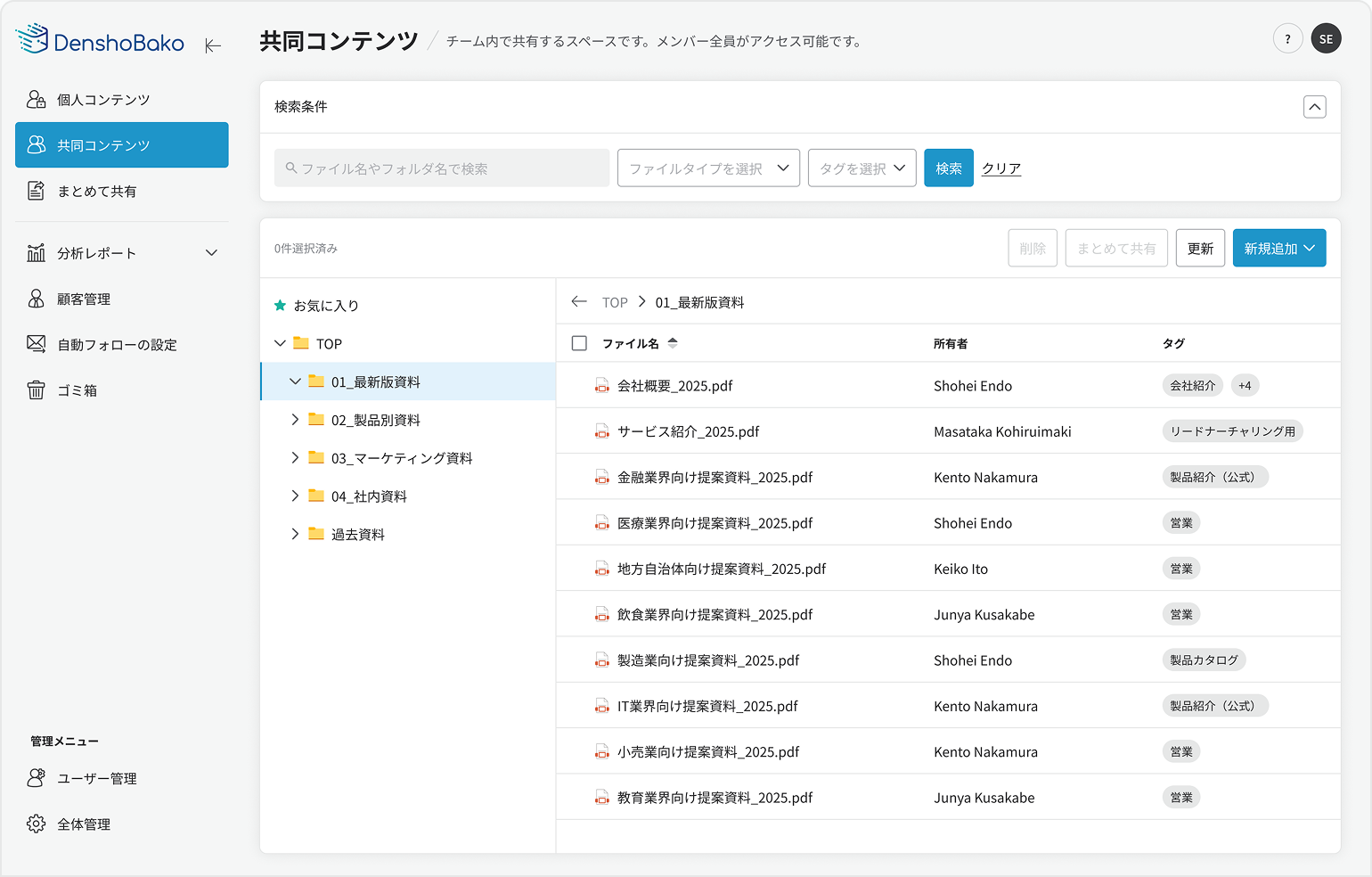 ファイルの共有状況を管理者が監査できるようにしたい。